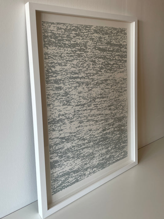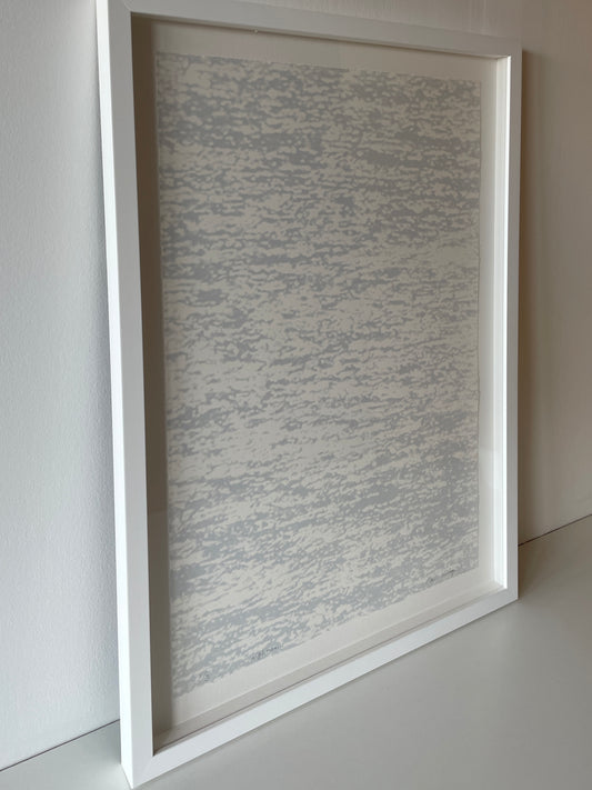 In his "Momentary" prints, the artist acts as a clock, registering the light reflecting off the refracted surface of the water at "Sunrise", "High Noon", and "Sunset" - creating a serene impressionist seascape. Konagi uses surfboard wax to create texture in the prints during the silkscreen process.