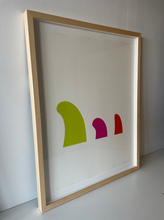 The “Ocean” series takes his sculptural fins works and translates them into limited edition prints. Each print is a one-of-a-kind handmade silk screen artwork by the artist.