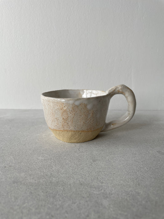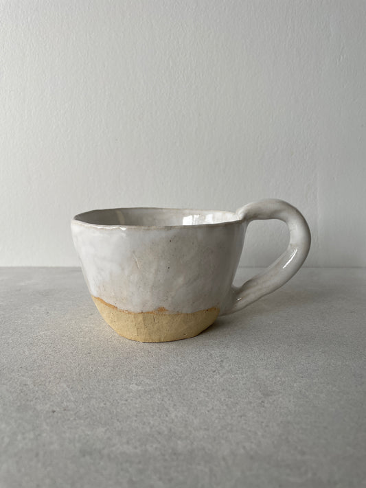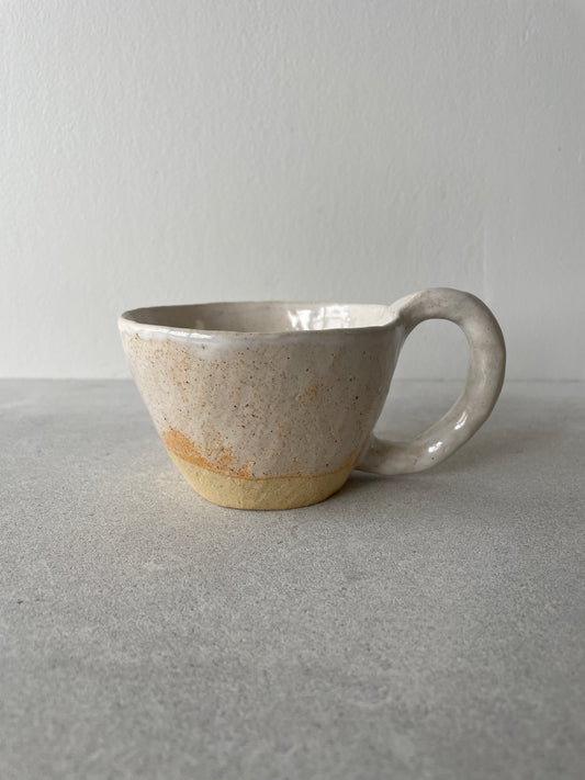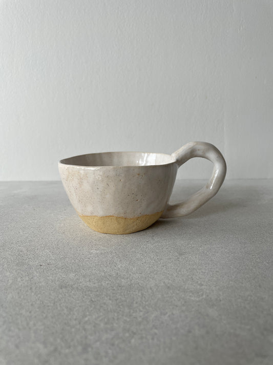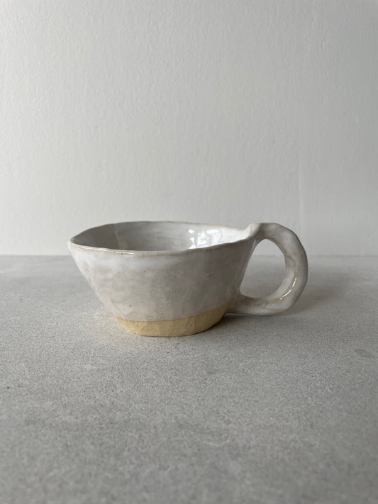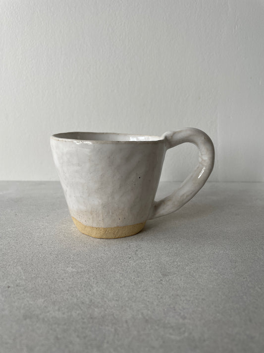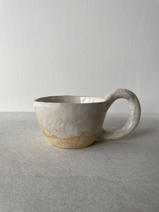 In addition, each mug has an ample-sized handle for comfortable use, regardless of size. Each work is an exploration of the beauty in a slightly imperfect design called wabi-sabi, adding character and beauty to any table setting. The result is a beautiful play of balance in textures and thickness.